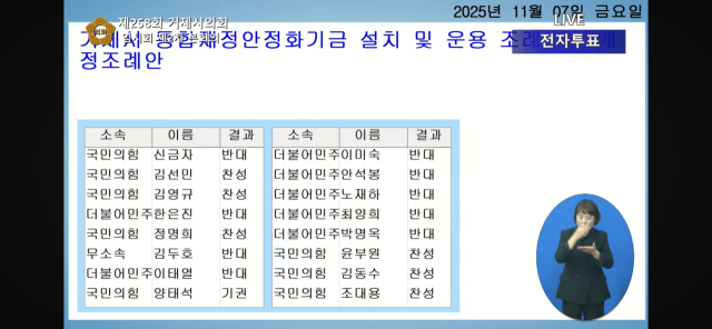 반면 국민의힘이 지원금 집행을 막으려 발의한 ‘통합재정안정화기금 설치 및 운용 조례’ 일부개정안은 부결됐다.