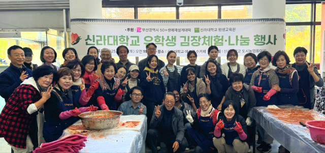 신라대 평생교육원 50+생애재설계대학 도시농업동아리 회원들은 ‘김장 체험 및 나눔 행사’를 개최해 외국인 유학생들에게 김장 체험 기회를 제공하고, 라면과 즉석밥 등 식료품을 전달했다.