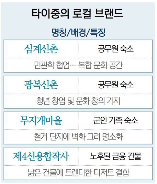 이 과정에서 타이중 중흥대학교는 맞춤형 교육 등을 통해 창작자·상인들을 양성하고 민간은 경관 개선에 나서는 등 민관학 협업 구조를 만들었다.