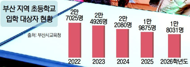 이 같은 흐름은 부산만의 문제는 아니다. 교육부가 이달 공개한 ‘2025년 초중고 학생 수 추계 보정 결과(2026~2031년)’에 따르면, 올해 전국 초등학교 1학년 학생 수는 29만 8178명으로 추산됐다. 한국교육개발원 교육기본통계, 국가데이터포털 장래인구 추계, 행정안전부 주민등록인구통계를 종합해 산출한 수치다. 전국 초등학교 1학년 학생 수가 30만 명 아래로 내려간 것은 이번이 처음이다.