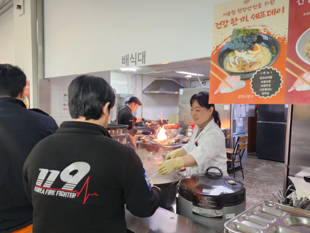금정소방서는 지난 26일 현장 대원들의 체력 회복과 사기 진작, 재난 대응력 유지를 위해 점심시간을 활용해 구내식당 특별 급식 프로그램인 ‘건강 한 끼, 셰프데이’를 운영했다.