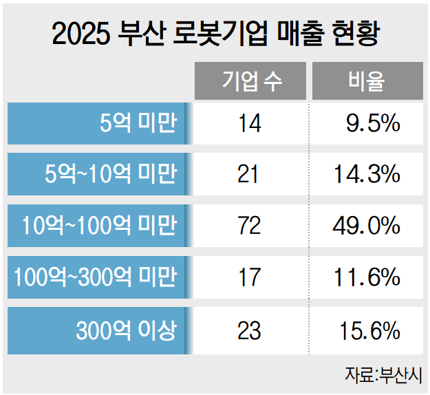 벌써 성과도 나오고 있다. (주)스튜디오랩이 AI와 로봇 기능을 활용한 포토봇 서비스는 CES2026서 최고혁신상을 받기도 했고 코아이가 무인방제로봇으로 CES2024 혁신상을 받았다. 하지만 현재 부울경 로봇기업 상당수는 연매출 100억 원 미만이다. 성장 가능성은 있지만 아직 갈 길이 먼 셈이다.
