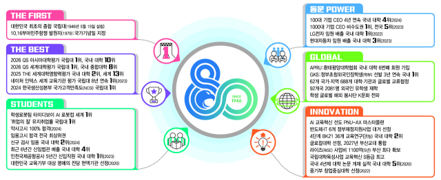 개교 80주년을 맞은 부산대학교가 세계 주요 대학 평가에서의 성과, 글로컬대학과 지역혁신중심 대학지원체계(RISE) 사업 선정으로 국가 거점 국립대학의 위상을 공고히 하고 있다. 글로벌 교류 확대와 연구·교육 경쟁력 강화가 맞물리며 세계 무대에서의 존재감도 한층 뚜렷해졌다는 평가다.