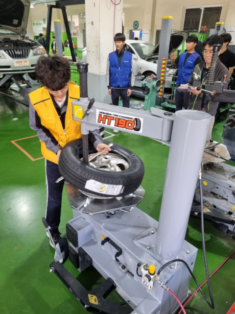 자동차과 1학년 학생들은 ‘수동 변속기 부품 조립 과제’를 통해 자동차 기본 구조를 이해하고, 2학년 학생들은 타이어 탈착 및 휠 밸런스 조정 미션을 수행하며 실제 현장 업무와 유사한 경험을 쌓았다.